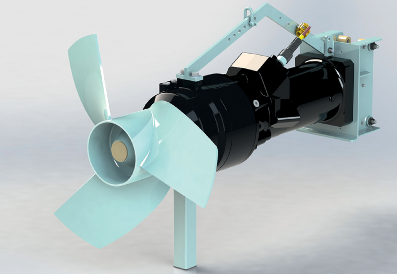 1 = рама, 2 = кабель, 3 = камера привода, 4 = маслоналивные пробки, 5 = пропеллер, 6 = форкамера, 7 = устройство контроля герметичности камеры уплотнений (в качестве опции), 8 = винты слива масла, 9 = планетарный редуктор, 10 = камера уплотнений, 11 = электродвигатель