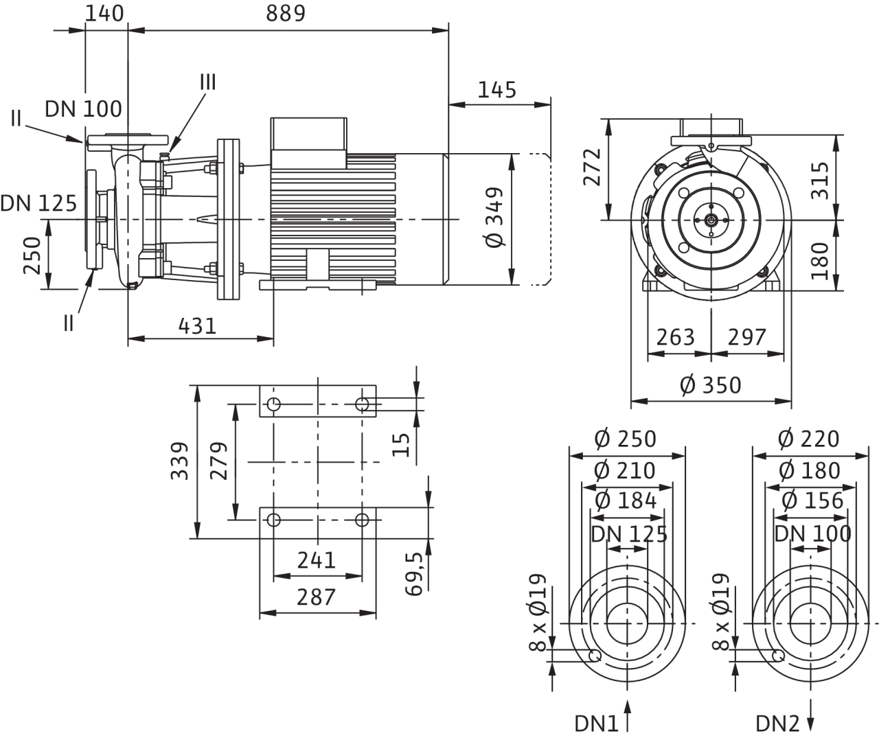 | Номинальный внутренний диаметр фланца (на стороне всасывания) | DN 125 |