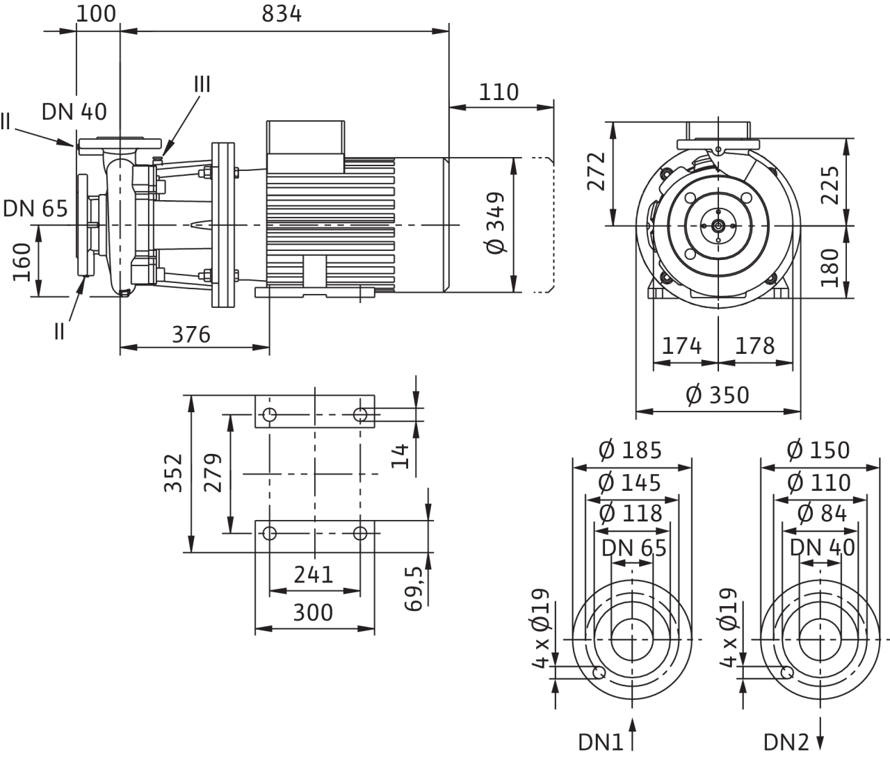 | Номинальный внутренний диаметр фланца (на стороне всасывания) | DN 65 |
