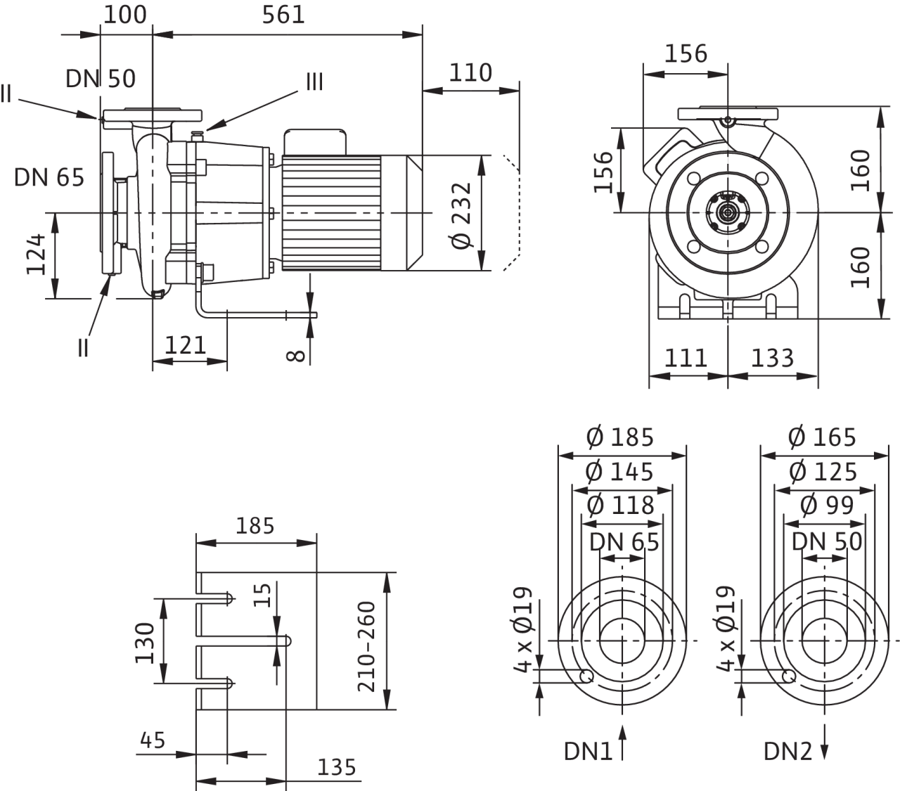 Номинальный внутренний диаметр фланца (на стороне всасывания)DN 65