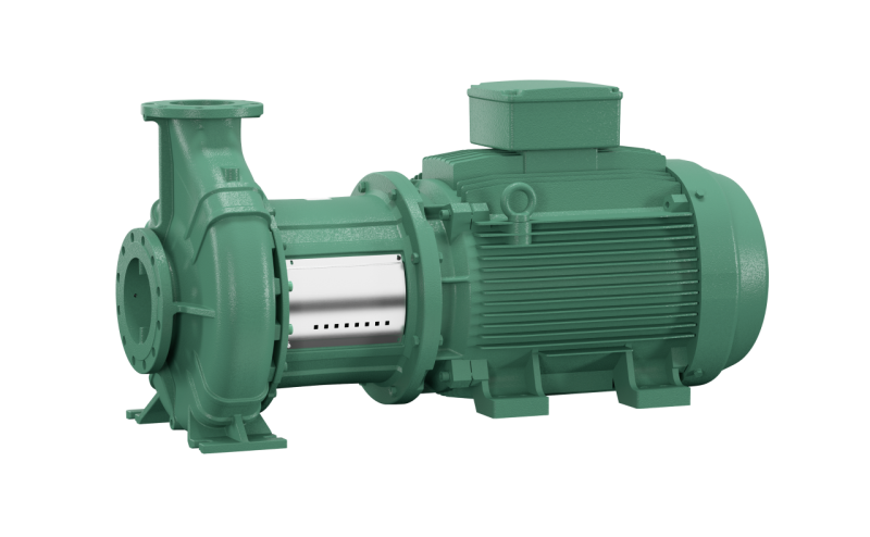 Одноступенчатый центробежный насос с сухим ротором блочного типа для установки на фундаменте. Блочное исполнение с низким уровнем шума и вибрации с промежуточным корпусом и неподвижно присоединенным унифицированным (стандартным) электродвигателем. С не зависящим от направления вращения сильфонным скользящим торцевым уплотнением (от 37 кВт/4-контактного и 45 кВт/2-контактного с картриджным торцевым уплотнением в системе Back-Pull-Out для замены скользящего торцевого уплотнения без демонтажа электродвигателя) и снижающим кавитацию рабочим колесом. Фланцы имеют штуцеры R 1/8 для измерения давления. На корпус насоса и промежуточный корпус нанесено катафорезное покрытие. Серийные электродвигатели с технологией IE3.