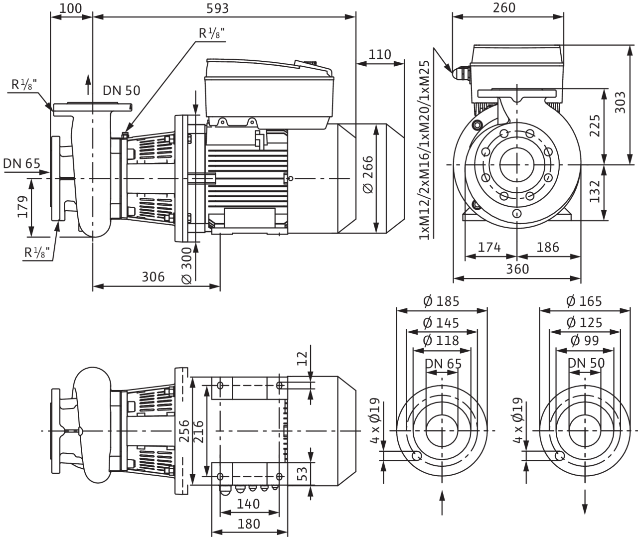 | Монтаж на трубопроводе (при мощности мотора до ≤ 15 кВт) | • |