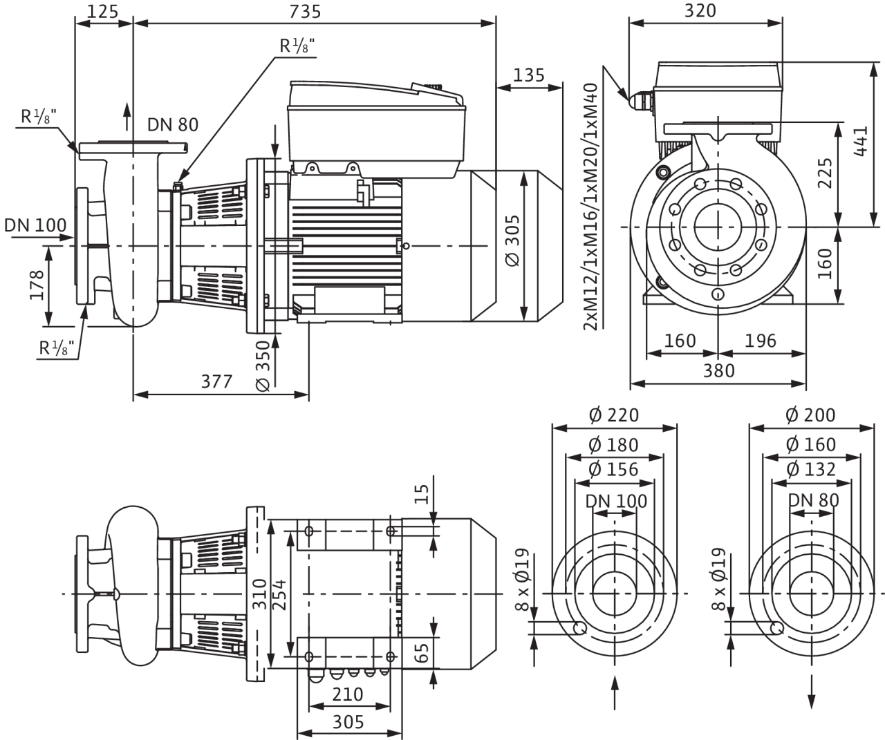| Диапазон температур при макс. температуре окружающей среды +40 В°C | -20...+140 В°C (в зависимости от перекачиваемой среды) |