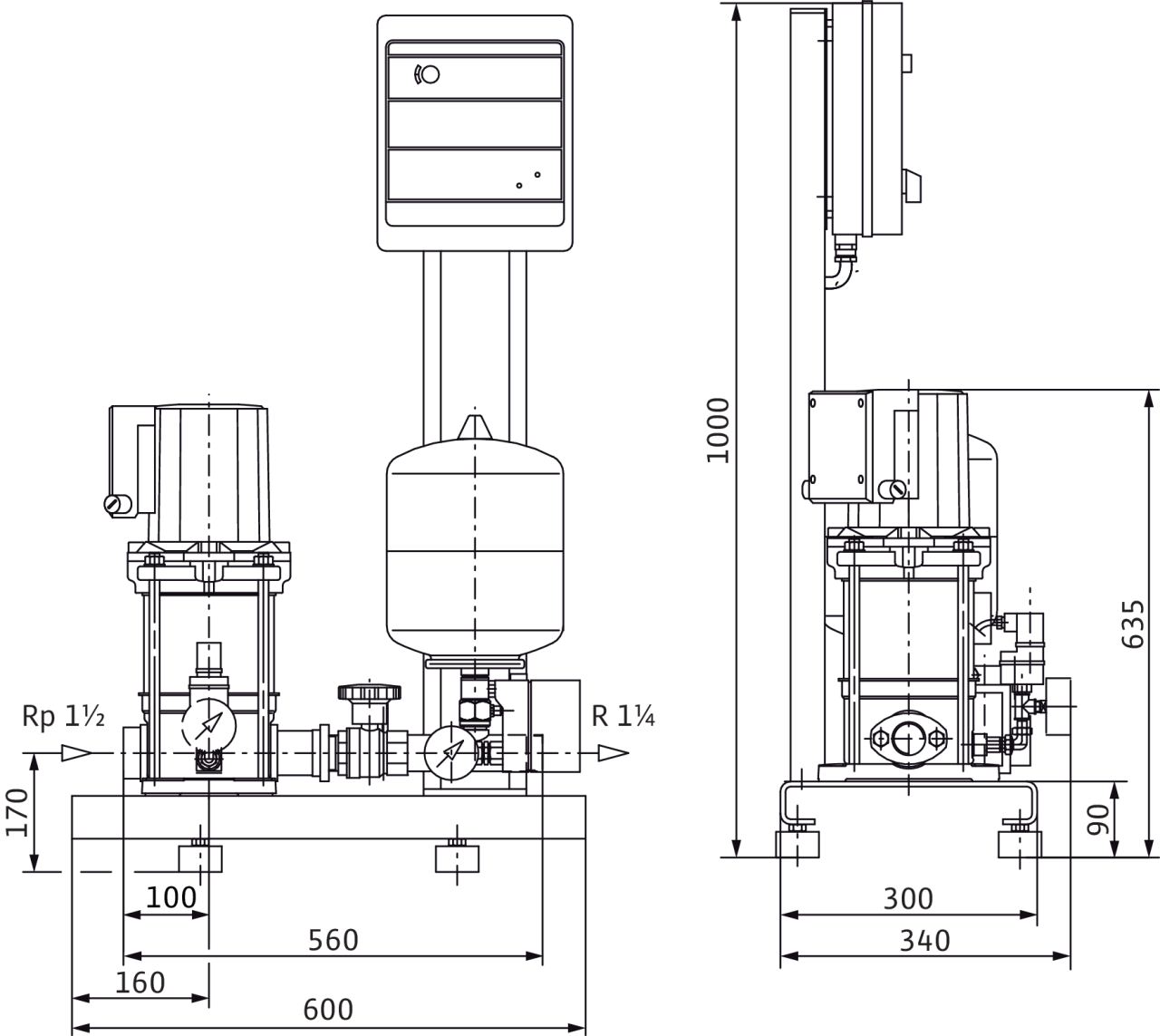 | Номинальный внутренний диаметр для подсоединения, на стороне всасывания | Rp 1ВЅ/ Rp 1Вј |