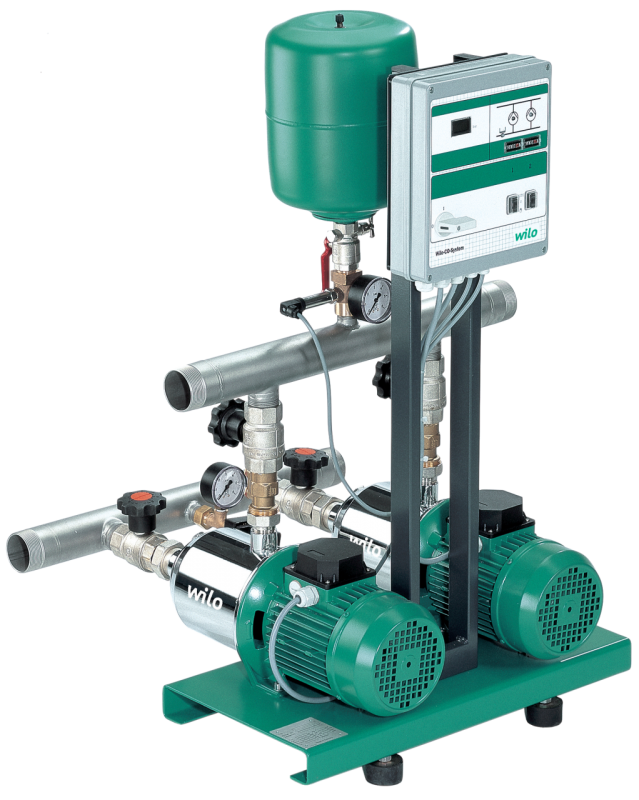 Компактная установка повышения давления согласно стандарту DIN 1988 и DIN EN 806, для прямого или опосредованного подсоединения. Состоит из нормальновсасывающих параллельно подключенных горизонтальных высоконапорных центробежных насосов из нержавеющей стали с сухим ротором. Готовность к подключению, установка на опорной раме с системой трубопроводов из нержавеющей стали, включая прибор управления со всеми необходимыми измерительными и регулировочными устройствами.
