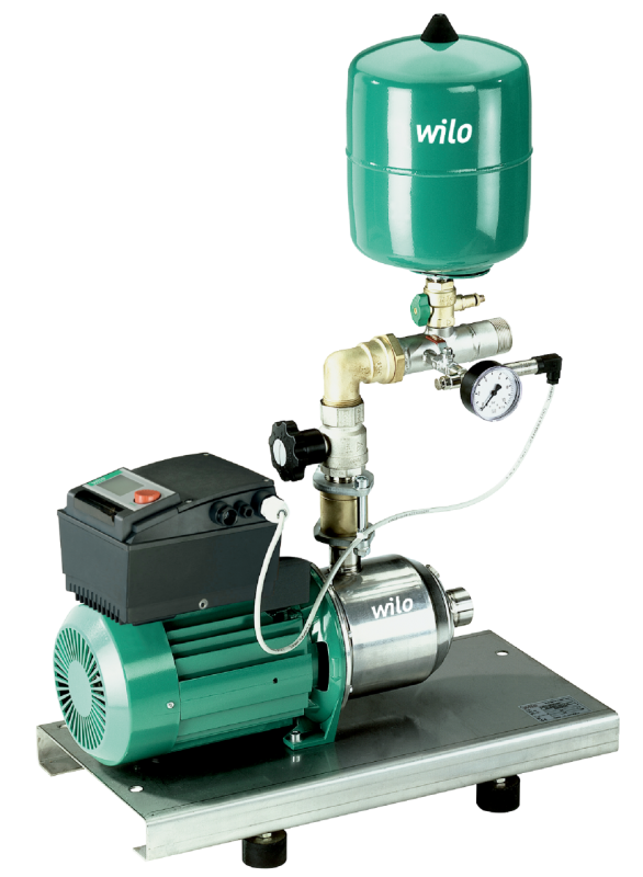 Установка для водоснабжения в качестве компактной установки для повышения давления или в качестве средства водоснабжения для подключения к приемному резервуару/водопроводной сети. Состоит из нормальновсасывающего горизонтального многоступенчатого высоконапорного центробежного насоса из нержавеющей стали серии MHIE. Уплотнение вала посредством не зависящего от направления вращения скользящего торцового уплотнения. Электродвигатель IE2 со встроенным частотным преобразователем с воздушным охлаждением и плавной регулировкой частоты вращения от 24 Гц до макс. 60 Гц.
