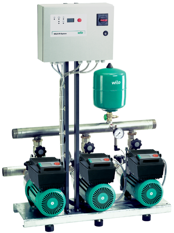 Компактная установка повышения давления согласно стандарту DIN 1988 и DIN EN 806, для прямого или опосредованного подсоединения. Состоит из нормальновсасывающих параллельно подключенных горизонтальных высоконапорных центробежных насосов из нержавеющей стали с сухим ротором, при этом каждый насос оснащен собственным частотным преобразователем. Готовность к подключению, установка на опорной раме с системой трубопроводов из нержавеющей стали, включая прибор управления со всеми необходимыми измерительными и регулировочными устройствами.