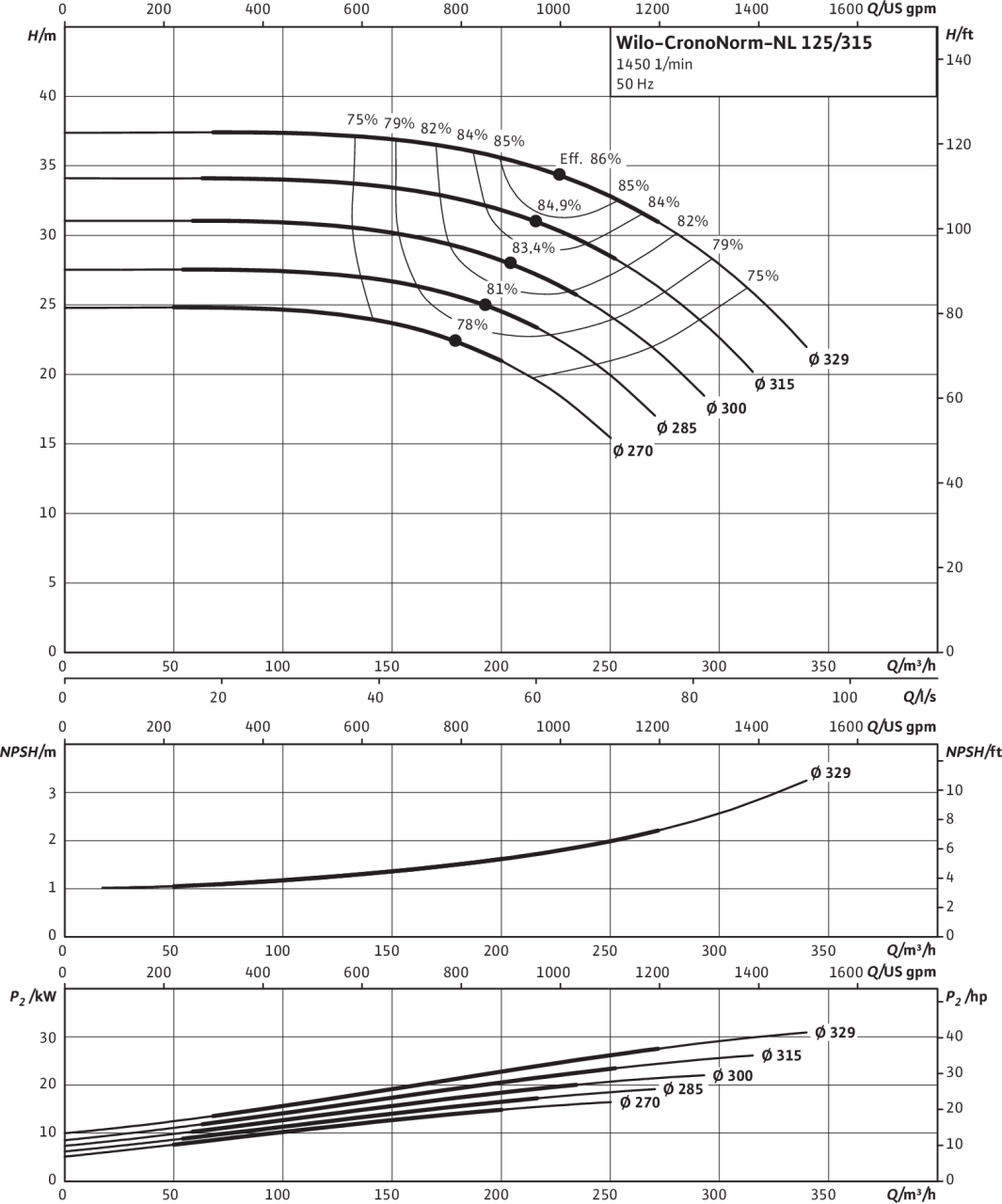 | Номинальный внутренний диаметр фланца (с напорной стороны) | DN 125 |