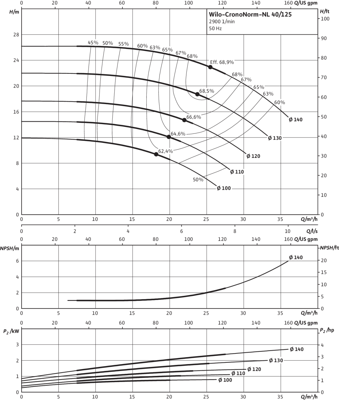 Электродвигатель IEC с 3 термодатчиками. Уплотнение вала посредством скользящего торцового уплотнения до температуры 120 В°C. Корпус из серого чугуна, вал из нержавеющей стали, рабочее колесо из серого чугуна (рабочее колесо из бронзы доступно за дополнительную плату). Электродвигатели с технологией IE3.