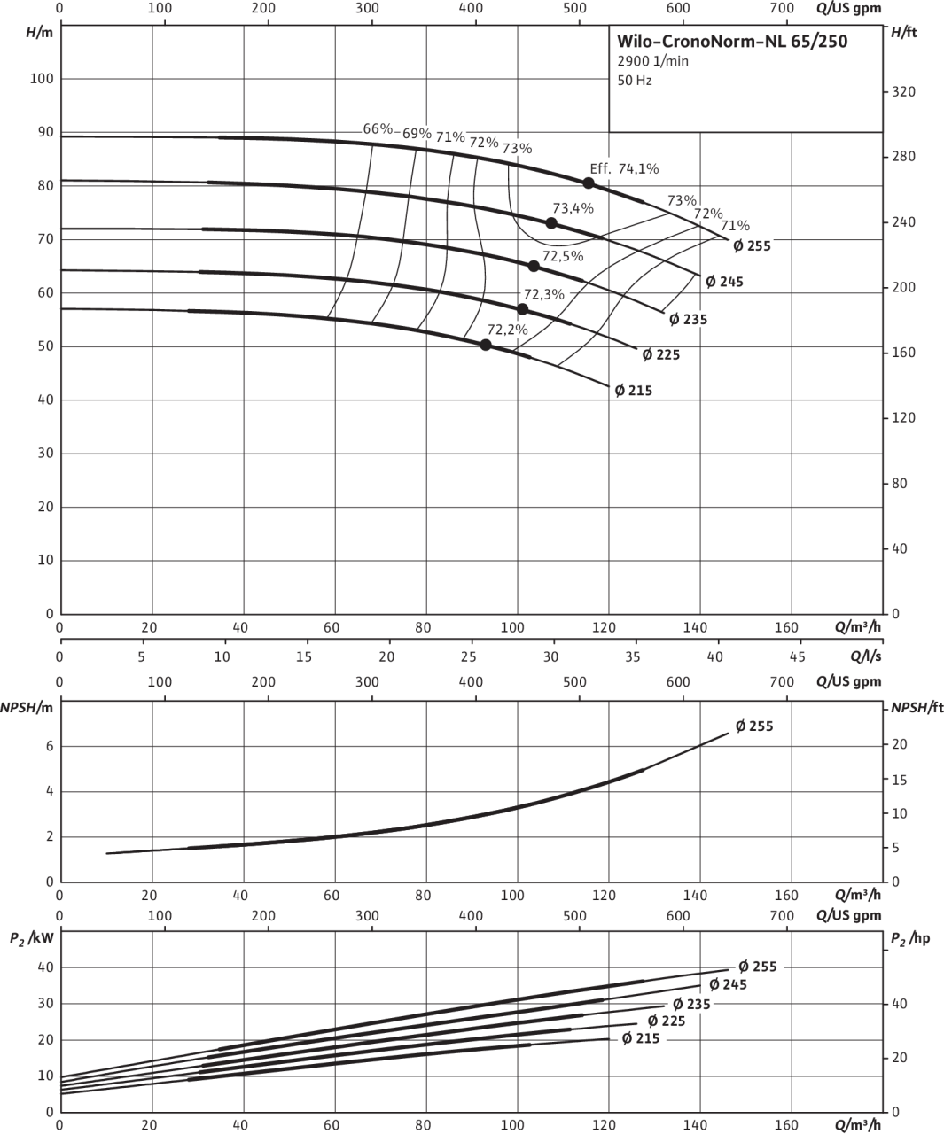 Электродвигатель IEC с 3 термодатчиками. Уплотнение вала посредством скользящего торцового уплотнения до температуры 120 В°C. Корпус из серого чугуна, вал из нержавеющей стали, рабочее колесо из серого чугуна (рабочее колесо из бронзы доступно за дополнительную плату). Электродвигатели с технологией IE3.