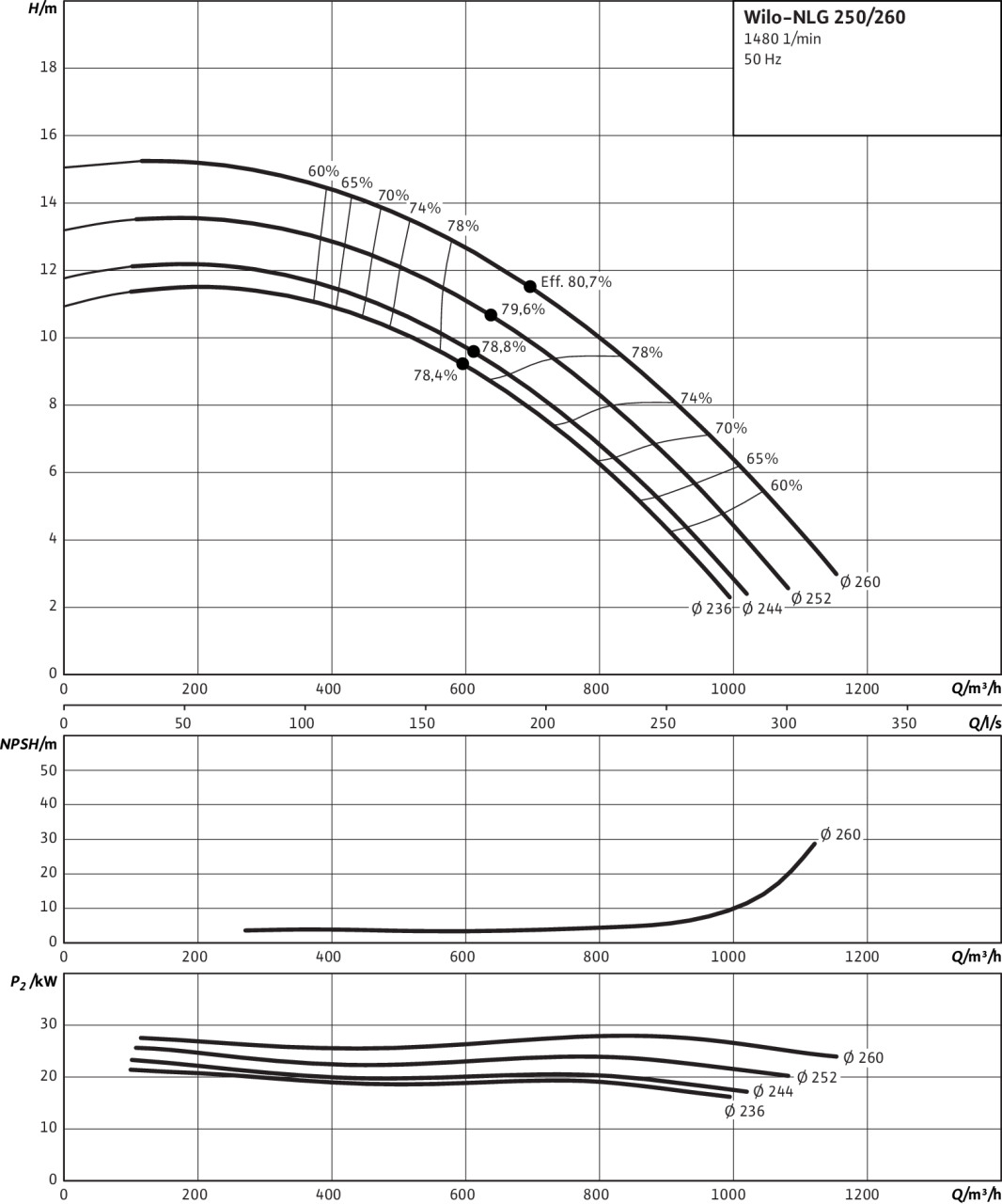 Электродвигатель IEC с 3 термодатчиками. Уплотнение вала посредством скользящего торцового уплотнения до температуры 120 В°C. Корпус из чугуна с шаровидным графитом, вал из нержавеющей стали, рабочее колесо из серого чугуна (рабочее колесо из бронзы доступно за дополнительную плату). Электродвигатели с технологией IE3.