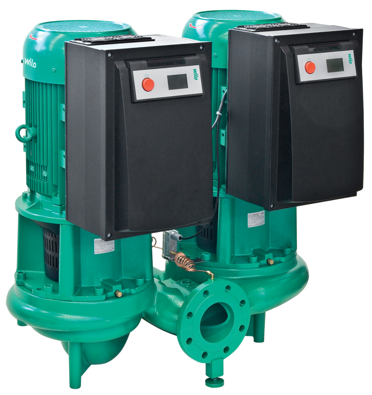 Сдвоенный насос с сухим ротором линейного типа для установки в трубах или на фундаменте со встроенным частотным преобразователем для электронного регулирования параметров, в том числе постоянного или переменного перепада давления (Δp-c/Δp-v).