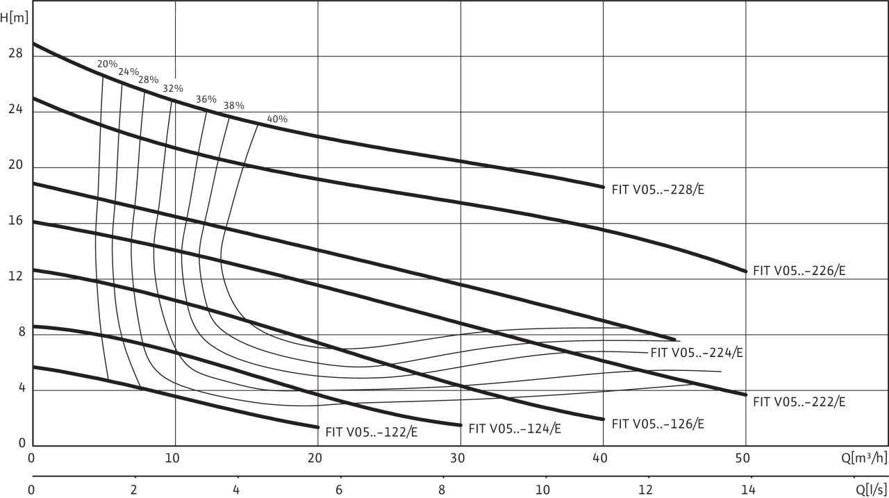 Характеристики Wilo-Rexa FIT V05.. - 50 Гц - Число полюсов: 2