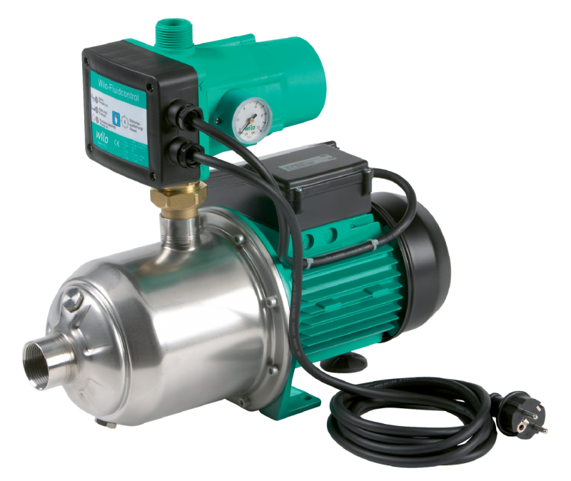 Напрямую присоединенный фланцами однофазный электродвигатель со встроенным термическим защитным выключателем и конденсатором. Система управления насосом с электронным устройством контроля давления и потока, встроенной защитой от сухого хода и обратным клапаном. Все детали, находящиеся в контакте с перекачиваемой средой, не подвержены коррозии. Насосная установка предварительно установлена в готовом к подключению виде и подключается с помощью кабеля длиной 3 м и сетевого штекера.