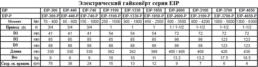 Характеристики — Гайковёрты серии ETC и EIP (Электрические моментные гайковёрты)