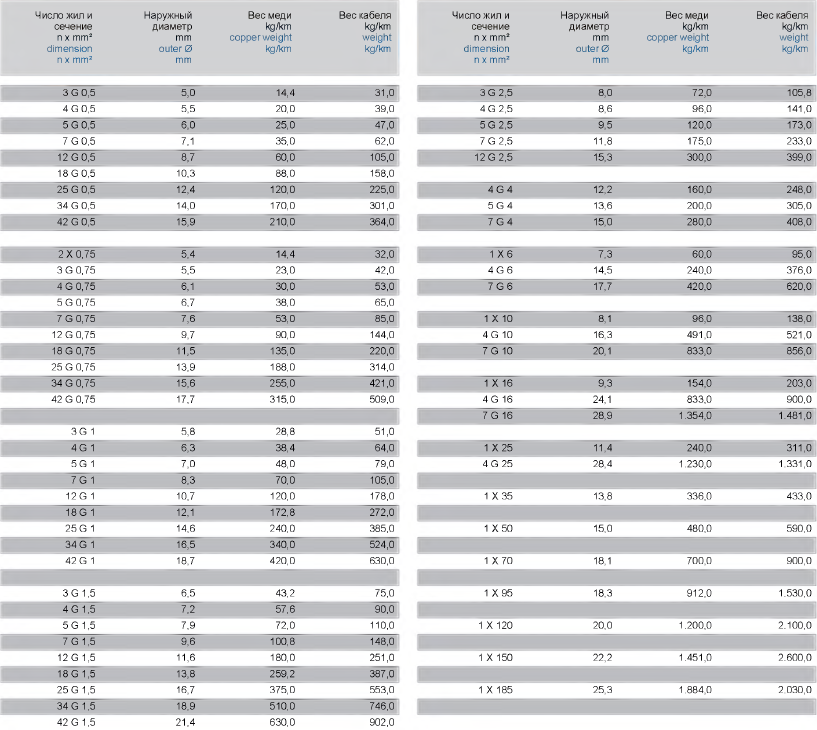 до 0,75 mm2 Uo/U 300/500 V; от 1 mm2 Uo/U 500/750 V |