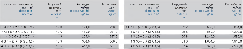 силовые провода: Uo/U 600/1.000 V; провода управления: 350 V. |