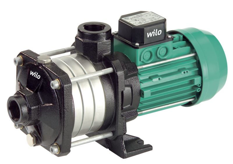 Данный насос имеет компактную конструкцию и оснащен сквозным насосным валом электродвигателя и не зависящим от направления вращения скользящим торцовым уплотнением. Секции, рабочие и ведущие колеса выполнены из нержавеющей стали, а корпус насоса выполнен из чугуна с катафорезным покрытием.