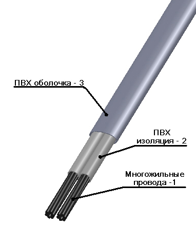 | Расчетная масса, кг/км: | 72 (сечение 2.5 мм²) 63 (сечение 1.5 мм²) 48 (сечение 1.0 мм²) 31 (сечение 0.5 мм²) |