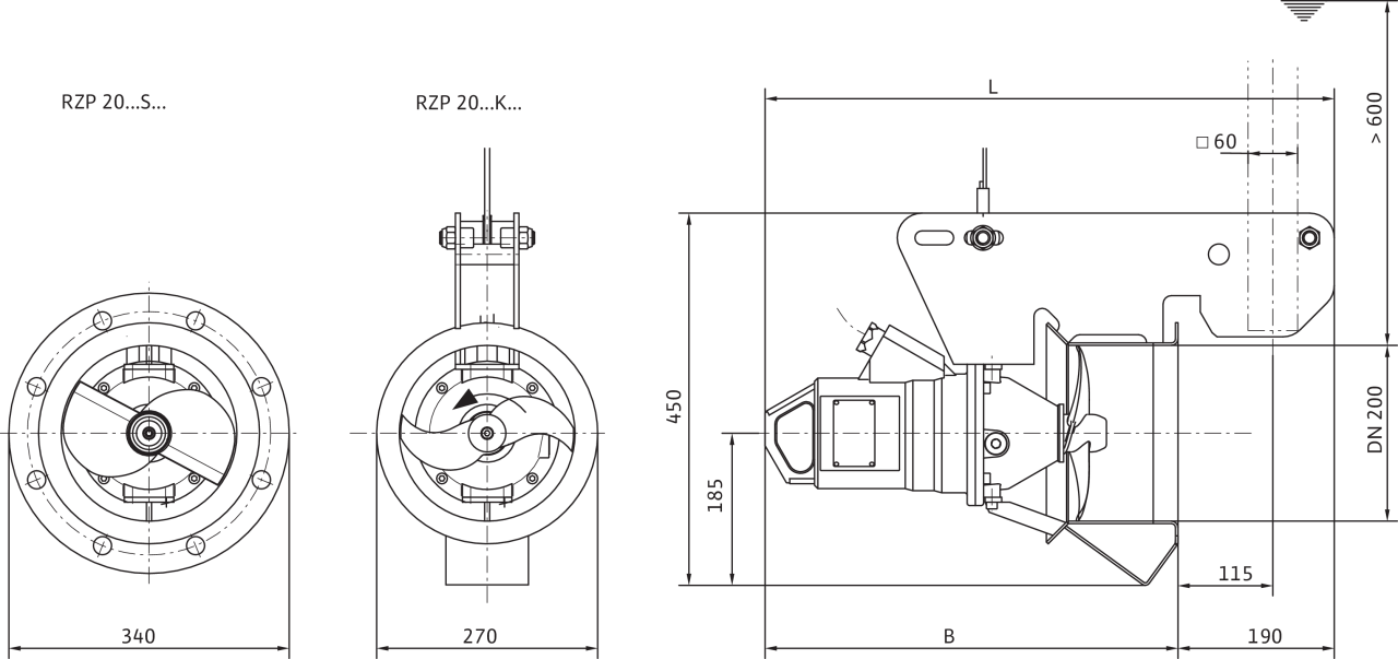 Тип пропеллера2-лопастный пропеллер с самоочищающейся ступицей; изогнут в обратном направлении; благодаря этому защищен от засорения и наматывания