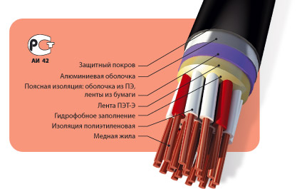 СБПЗАШв — кабель с медными жилами, с изоляцией из полиэтилена (ПЭ), с гидрофобным заполнением сердечника, в алюминиевой оболочке, в защитном шланге из ПВХ пластиката.