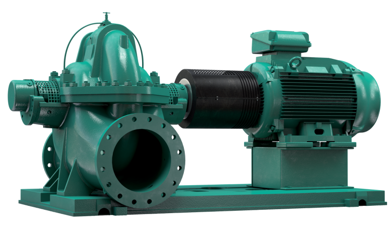 Одно- или двухступенчатый нормальновсасывающий центробежный насос с аксиально разделенным корпусом насоса. Корпус насоса спиральной формы, состоит из двух литых частей, соединенных болтами вдоль оси насоса.
