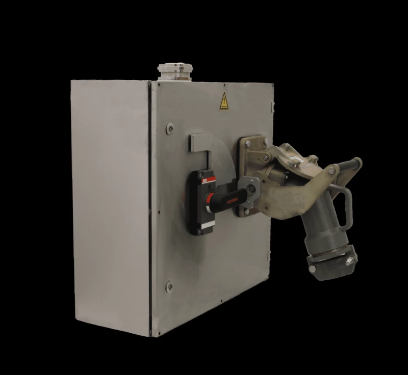 Настенный силовой шкаф с розеткой с блокировкой EC-MSI-X5DE318. Рассчитан на ток 420 Ампер и контактную группу 3P+E+2p. Рекомендуется использовать при напряжении электрического тока до 3,3 кВ. Степень защиты соответствует стандарту IP66.