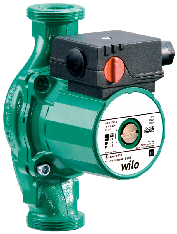 Циркуляционный насос с мокрым ротором для установки в трубах с ручной трехступенчатой регулировкой частоты вращения.