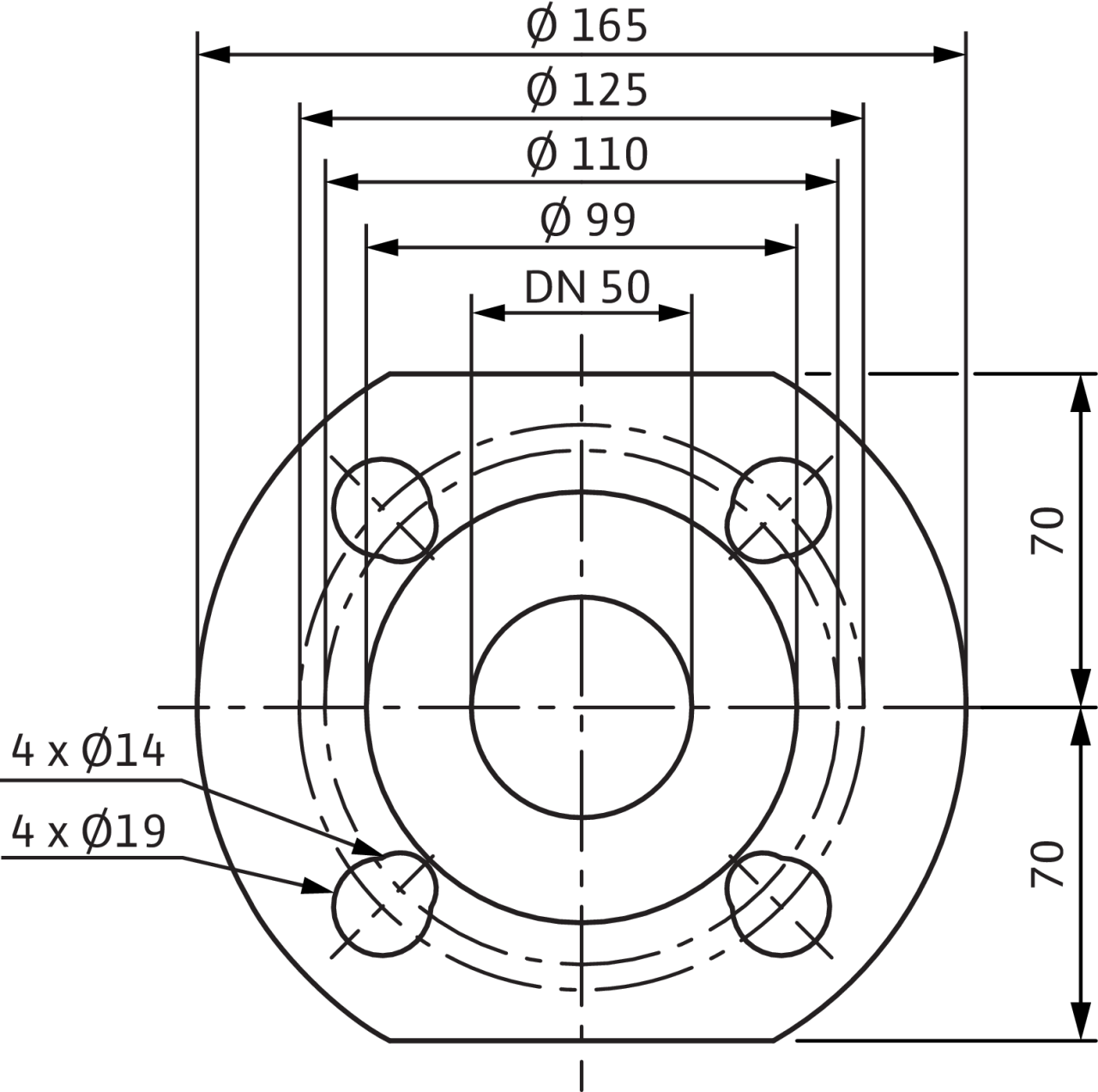 | Номинальный внутренний диаметр фланца | DN 50 |