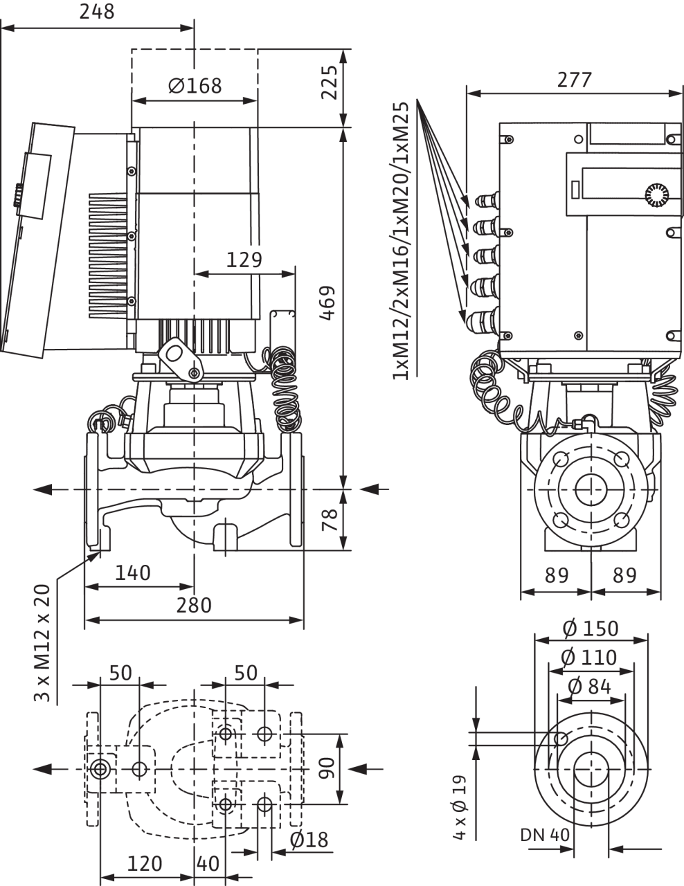 | Диапазон температур при макс. температуре окружающей среды +40 В°C | -20...+140 В°C (в зависимости от перекачиваемой среды) |