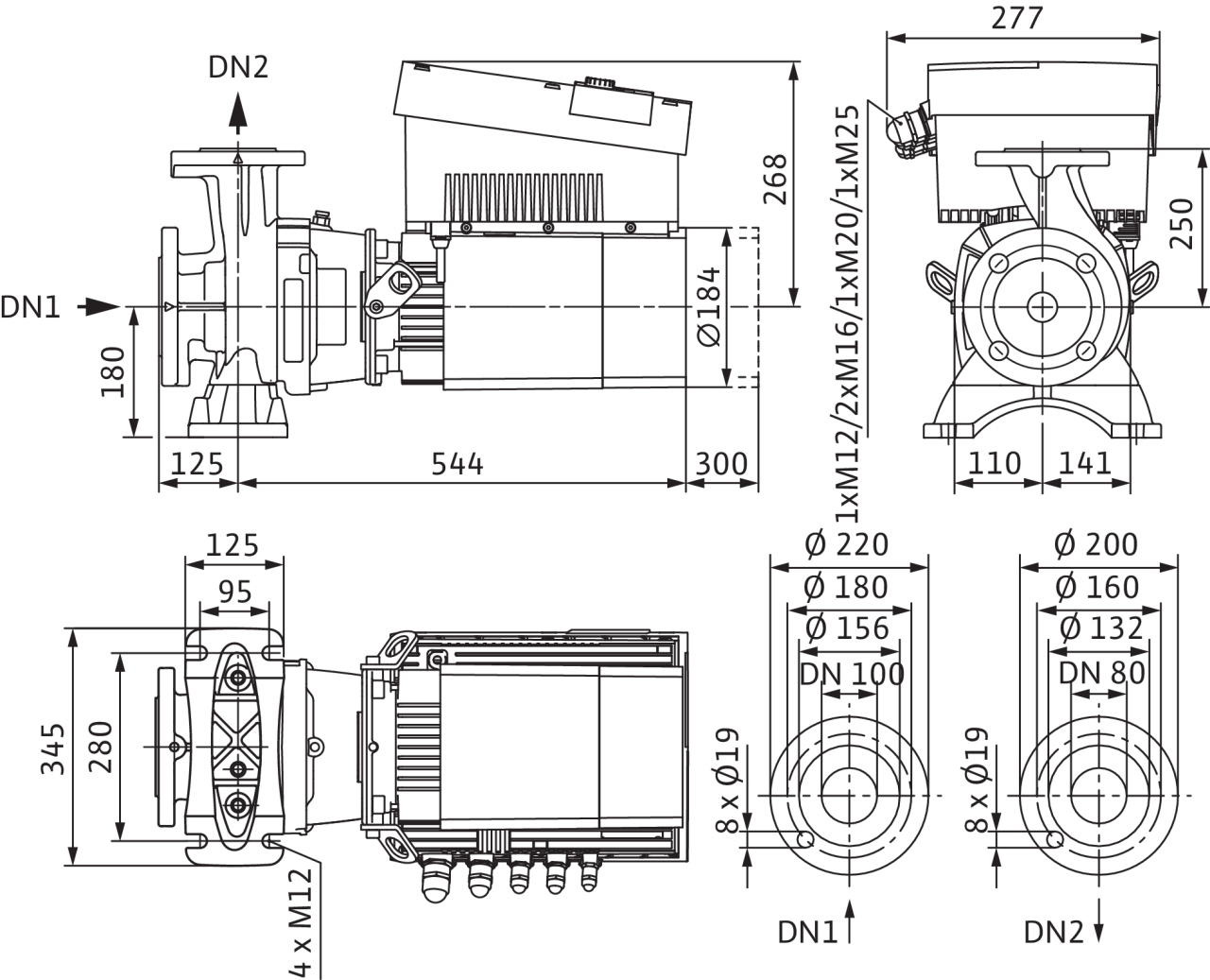 • фланцы PN 16 с перфорацией согласно EN 1092-2;