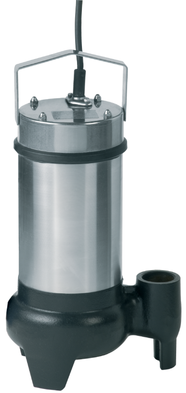 Погружной блочный агрегат для вертикальной установки в погруженном состоянии для перекачивания загрязненных и сточных вод. Насос с вертикальным напорным патрубком и внутренней резьбой. Электродвигатель со защитой от перегрева (автоматическое повторное включение после охлаждения электродвигателя), установленным поплавковым выключателем и разъемным соединительным кабелем со штекером с защитным контактом.