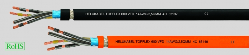 Силовой кабель высокой гибкости с повышенной маслостойкостью для современных серводвигателей; двойное экранирование посредством плёнки из специального алюминия (100% покрытие) и лужёной медной оплётки (пр. 85% покрытие) обеспечивает хорошую защиту от электрических помех и возникающих в результате них перебоев в работе. Согл. NFPA 79 2007 допущен для открытой, незащищённой прокладки как в кабельных лотках, так и в промышленных установках. Специальная PVC-оболочка чрезвычайно устойчива к маслам, хладагентам и растворителям и поэтому идеально подходит для промышленного применения при открытой прокладке, прокладки в трубах и земле.