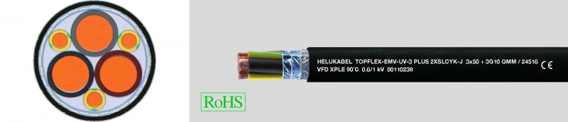 - Специальный кабель подключения двигателей для частотных преобразователей на основании DIN VDE 0250