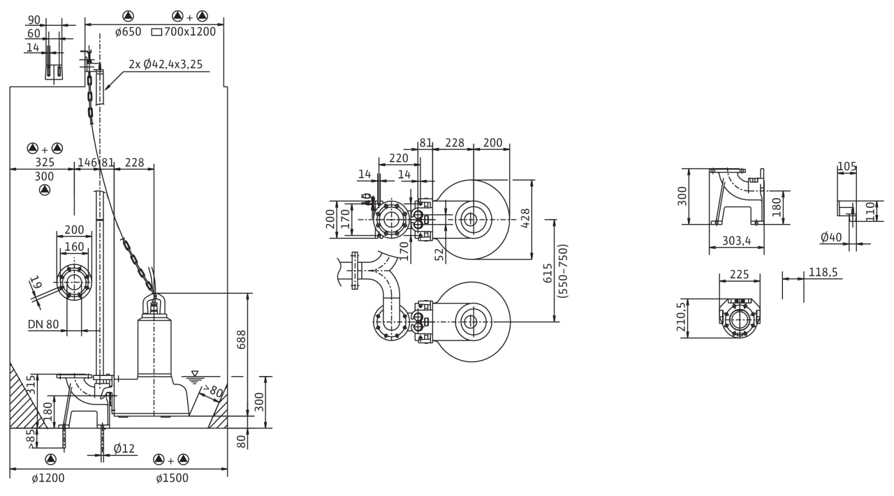 Wilo-Drain TP 80 - стационарная установка в непогруженном состоянии
