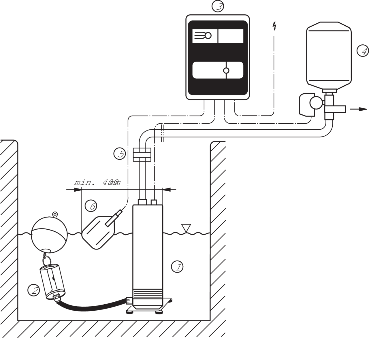 | 6 | Устройство защиты от нехватки воды WA 65 с соединительным кабелем (поплавковый выключатель) |